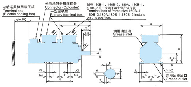 注3) 375kW及450kW基底速度1500 min-1的電機轉(zhuǎn)速范圍為1800~1500 min-1。而且,450kW基底速度1200 min-1的電機轉(zhuǎn)速范圍為1500-1200 min-1(★標記)。