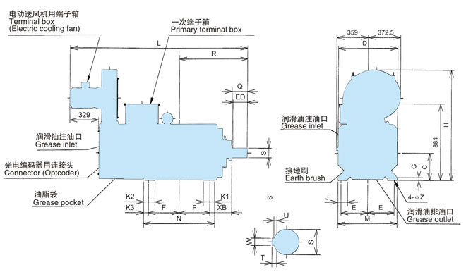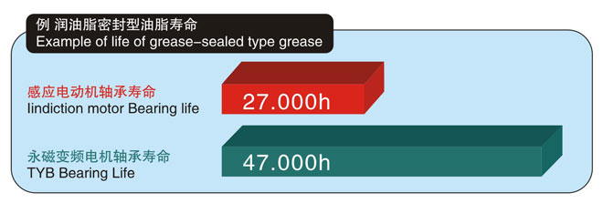 因為轉(zhuǎn)子幾乎不發(fā)生損失,所以軸承溫度較低,密封油脂壽命大約延長至本公司YVF2系列變頻器專用IM的